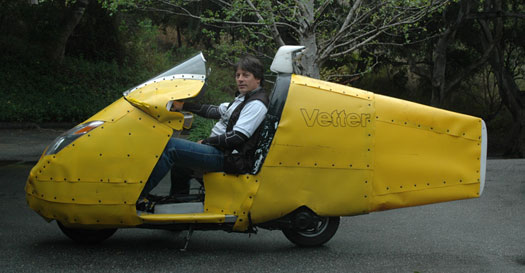 | The Vetter Challenge is pretty simple, really. Enter the Quail Motorcycle Gathering (below). We will start with a filled tank and ride with the group, at the speeds the group rides. Last year, we were led by a CHP Officer on a BMW. I will be riding towards the rear. As always, you must stay in front of me. If you fall behind me, you disqualify yourself for riding too slow and drop out of the competition. Of course, you may continue with the ride and enjoy the rest of the Quail events. You just cannot be considered as a winner of the Challenge. | ||||||||||||||||||||||||||||||||||||