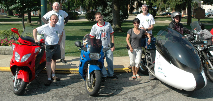 | Craig's analysis of the electric results: Traveling the way we really drive, Kyle demonstrated a real and fair cost for an electric motorcycle. 1.8¢ per mile is about 3/4 the cost of Charly Perethian's winning 2.3¢ per mile This is significant. But the difference is not as much as we are led to believe. Equally significant: I certainly did not expect an electric bike to go 104 miles in real driving conditions. But, they did go 38 miles. This is important information. Lithium Ion batteries don't respond well to "over charging" or "over discharging". "Theory" said that if Kraig's electric bike was properly streamlined, it could go the distance. In reality, nobody brought a completed streamlined electric bike. Nobody went the distance. This is important information. Electric motors can overheat in normal summer Ohio driving conditions. Did you know these things? This is how we learn. | ||||||||||||||||||||||||||||||||||||||||||||||||||||||||||||||||||||