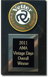 | Jack continues: "The car is light, streamlined, and powered by an appropriate engine; a 32 horsepower three cylinder 1100cc turbocharged engine from Kubota's industrial line. MAX has adequate performance and excellent efficiency for what it is, but for the Vetter Fuel Efficiency Challenges, it's bigger than it needs to be and it has more weight, more power, and even more wheels than it needs. I think a similarly developed motorcycle should be able to beat MAX's temperature corrected mileage by about 50%...as demonstrated by Charly's and Fred's bikes." Jack McCornack has posted his story on his Mother Earth News Blog. You will get a lot more details from him there. | ||||||||||||||||||||||||||||||||||||||||||||||||||||||||||||||||||||