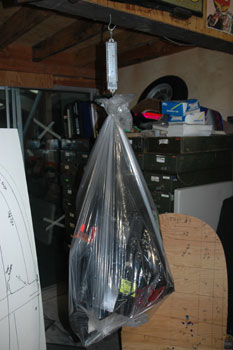 | When the thin recycled printer sheet stock curved, it becomes enormously strong. | We decided it was time to weigh the combined Body and Tail. | |||||||||||||||||||||||||||||||||||||||||||||||||||||||||||