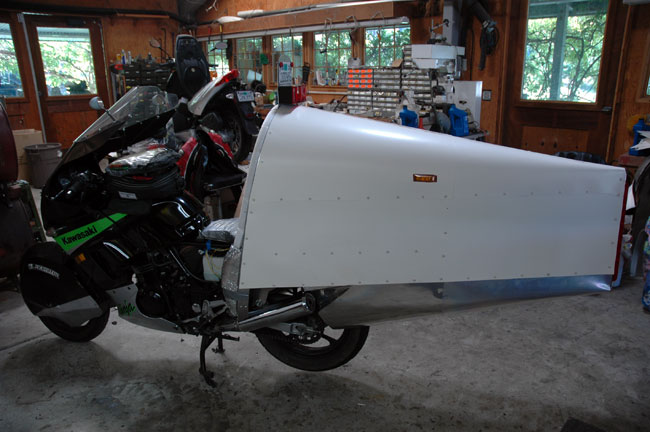 | With the new streamlined skin in place and the seat is lowered an inch, Alan is ready to put some miles on his Streamlined Ninja. To the right, is the way Alan put 10,000 miles on his bike over the summer of 2011. I want to know if the new streamlining feels any different. | ![]() | |||||||||||||||||||||||||||||||||||||||||||||||||||||||||||