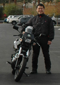 | And once again, the order of finishers was the same as in previous events: First Place: Fred Hayes and his zippy Diesel Streamliner: 133.2 mpg Second Place: Alan Smith on his new tailed 250 Ninja: 95.9 mpg Third Place: Joshua Chen on Fred's other Diesel: 95.3 mpg Fourth Place: Craig's 250 Helix: 92.9 mpg Fifth Place: Vic Valdes on his Vision 550: 61.9 mpg Turns out it was an easy, 173 mile ride. We encountered a strong headwind at first... then blustery side winds... and then a slight tail wind. I led, setting the pace... indicating 72-73 mph (possibly speeding). The other riders speedometers read even higher. Even so, most cars passed us. Since this was a test ride to evaluate the possibilities of a Las Vegas to Barstow Challenge, we did not pack groceries or take into account the cost of the fuel. At the next Challenge, however, be prepared to carry the groceries and to measure the results in dollars and cents. Here are the Challengers' comments: | ||||||||||||||||||||||||||||||||||||||||||||||||||||||||