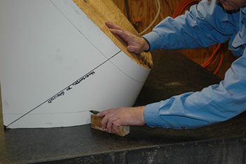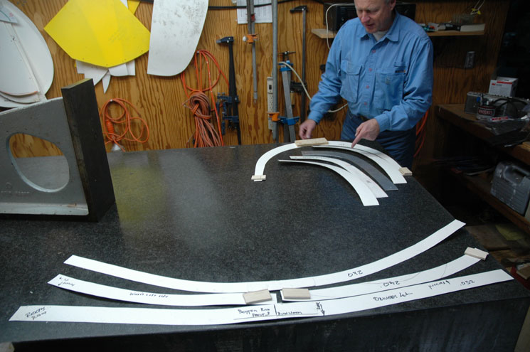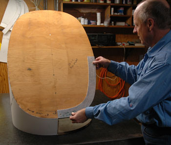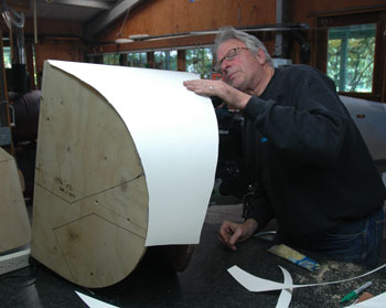 | New 25" wide nose model: The revised dimensions meant that I had to make an entirely new nose mockup in plywood and wrap it with milk carton paper. | |||||||||||||||||||||||||||||||||||||