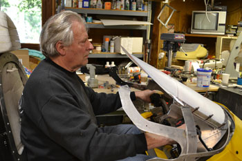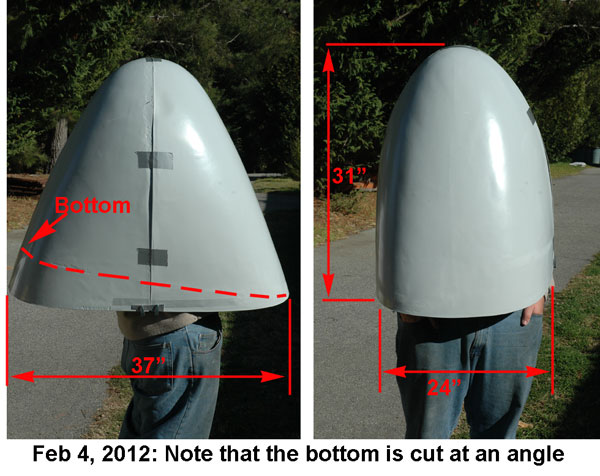 | Morgan said that it was peaceful and tranquil in there. "A nice place to organize my thoughts" I include these rough dimensions for those of you who might be ordering a Vetter Streamlined Nose for your own project. Typically, I simply double the cost to me of the fiberglass parts. Since this is the first mold and without a perfect finish, until further notice, if you want parts from this mold, I will add only 75% to my cost. No price has been established yet. Lead time is about a week. Let me know if we can help. The 2012 Vetter Challenges are coming up fast! | ||||||||||||||||||||||||||||||||||||||
