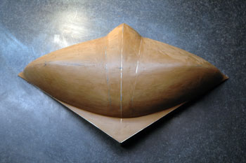 | Left side hand streamlining Jan 28, 2012: The finished shape is ready to be copied in reverse for the other side. Then to the fiberglass shop for the mold. | Mirrored with right side hand streamlining Feb 2, 2012: Both right and left streamlined hand guards are combined into one shape and ready for the fiberglass shop. | |||||||||||||||||||||||||||||||||||||