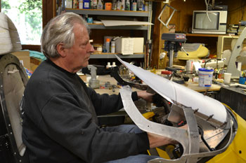 | While the the windshield turret is being designed, the fibreglass mold for the nose is being made. | ||||||||||||||||||||||||||||||||||||||