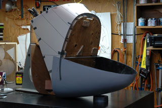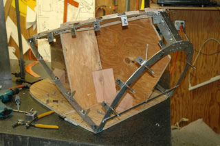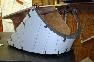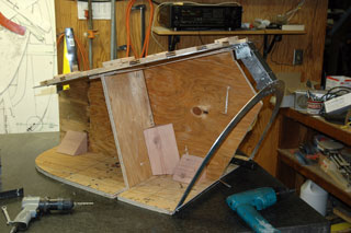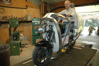 | Extending the streamlining Because the Ninja rider uses footpegs, the sides of the streamlining can be extended to the rear more. | Jigs and fixtures Making a plywood fixture that will help me to accurately make my streamliner nose. | ||||||||||||||||||||
