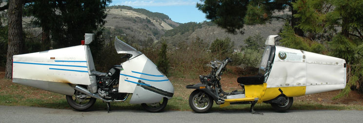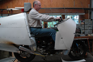 | On this side... Alan Smith streamlining his Ninja 250 | Over here... Craig Vetter rebuilding his Helix Streamliner | ||||||||||||||||||||