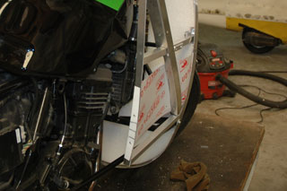 | Now Alan can wrap the structure with a trial piece of milk carton paper and extend it for his Ninja. I cannot add this bit of streamlining on my Helix because my legs don't go vertical on my Helix. I sit Feet-forward. Note: While I am doing my best to make a Streamliner Kit that will fit any bike, there will be differences like this you will have to deal with. | |||||||||||||||||||||