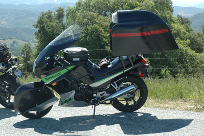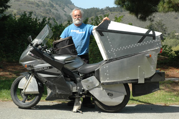 | "The John Cronshaw fairing from AirTech works very well by itself and the RTWF saddlebags work quite well on the Adventure Touring bike Joshua rode. But mixing the John Cronshaw fairing with the RTWF saddlebags just didn't work aerodynamically as well as I had hoped. During the run, it wasn't apparent because the bike ran so well. Overall performance was up from last year, so it was very easy to keep the faster pace, maybe a little too easy. The increased performance may have contributed to my over exuberance at Laguna Seca. That clearly cost me some mileage. | ||||||||||||||||||||||||||||||||||||||||||||