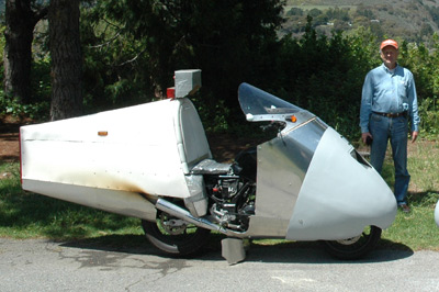 | Hi Craig I just want to say thanks to you and all of your family for putting on this event. What I have learned from participating in the Vetter Challenge is that although my bike is quit an improvement over the stock GS500 it still has a long way to go, before it gets to, as good as it can get. I suspect that although a 500 cc bike is to big to win the Vetter Challenge I believe that 100 mpg is possible. My plans for next year are; finish the full streamlining on the Honda VT500 and the Honda CBR600 with the objective of getting into the 90 mpg zone on a 500 cc or 600 cc bike. Ron | ||||||||||||||||||||||||||||||||||||||||||||