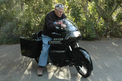 | Fred got worse mileage this year. Why? Last year he did not ride with his saddlebags. This year he rode with his saddlebags. The headwinds were stronger this year, too. Could streamlining have made the difference? Fred comments: | ||||||||||||||||||||||||||||||||||||||||||||