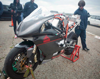 | Yet another electric bike that plans to show up at the AMA Vintage Days Vetter Challenge. This one from the Buckeye Electric Motorcycle Race Team. | ||||||||||