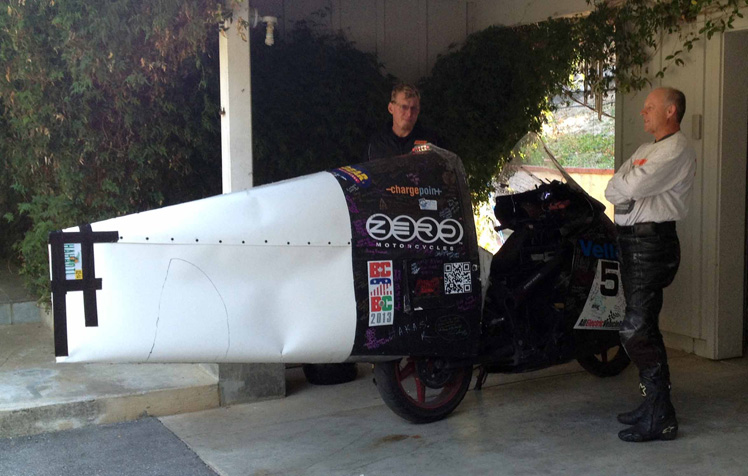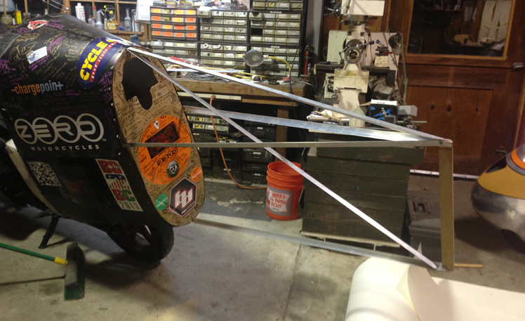 | Terry and Jeremiah Johnson, a fellow Zero racer, roughed out the shape and structure in 1/2" by 1/2" aluminum angles. I was recovering from my hip operation and was not much help. The new tail turned out to be almost a foot longer than the one on my Helix. If anything, I'd have made it shorter. But this is what we have. Lets use it as a test bed. What will happen on the road? At windy Texas charging stations? This will be a good test of how an extreme tail reacts. First road reports from Terry: | ||||||||||||||||||||||