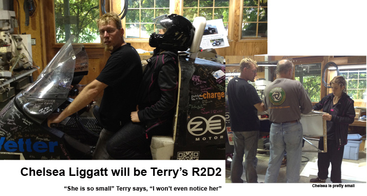 | Chelsea will direct Terry on the road - like R2D2 - so he can concentrate on piloting. In between duties, she plans to cat nap. At charging times, Terry will sleep, she will stay awake, pay for charging and make sure Terry is up as soon as the batteries are filled. Terry now has so many chargers, his sleep time is very short. | ||||||||||||||||||||||