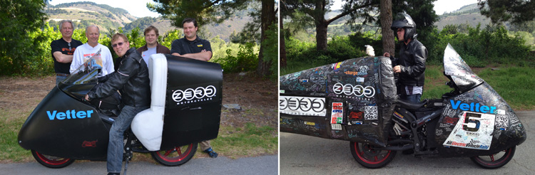 | 2013: Fresh from the Vetter Design Works 2014: Looking a little tired 34,000 miles is a lot of miles to ride in a year on any motorcycle. But Terry Hershner did it between May 2013 and May 2014 on his electric Zero. | ||||||||||||||||||||||||||||||||