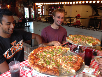 | Little by little, we built and rebuilt the tail structure, making the components compact and strong. When it seemed strong... even tho it was made in thin wood... it was time to begin making it from aluminum. But not before a good pizza dinner. | ||||||||||||||||||||||||||||||||