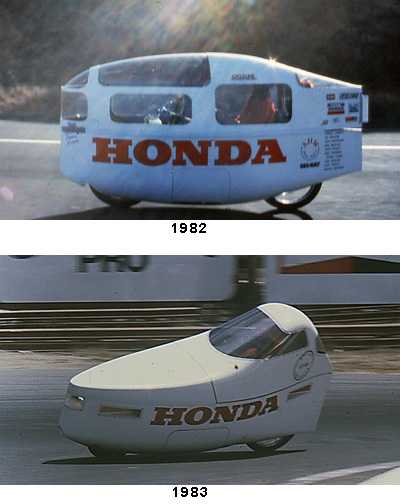 ![]() | At the 2013 Vetter Challenge, the V Tech Team ran a Ninja 250 inside standard Vetter Streamlining. This year, they thought they could do better with their own streamlining. I love a Challenge But I have concerns. 32 years ago Honda tried a similar shape only to have it blow over in spite of having world champion Trials Rider Debbie Evans as pilot. Honda returned in 1983 looking like this- (left). We can see what Honda did but I cannot remember the comments that were made. Has the VTech team been out in the wind yet? Have they been riding in the rain? Can they get on and off by themselves with no help? These are very important qualities of a motorcycle that is to be our first choice in a garage full of great machines. | ||||||||||||||||||||||||||||||||||||||