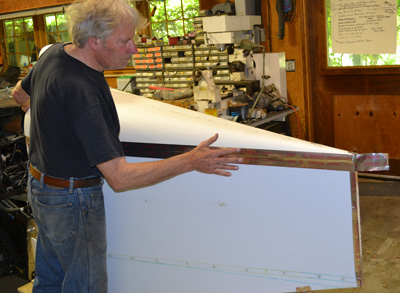 | The Seat bulkhead provides the beginning of the new tail. I am making the strongest, lightest space frame possible out of tetrahedrons. The next step is to wrap it with milk carton paper to make a slippery shape that helps the air slip by. | ||||||||||||||||||||||||||||||||||||||