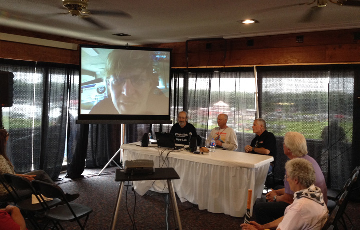 | SKYPE-ing was Diesel Fred Hayes' idea. Professor Richard Goff, left, Alan Smith and Diesel Fred helped Terry with his presentation. Get well Terry. We all missed you. Rebuilding Terry's Streamliner Pt. 1 | ||||||||||||||||||||||||||||||||||||||