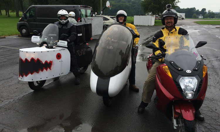 | Professor Richard Goff, 2013 Zero DS with Corroplast Streamlining 135.4 miles, 13.140 kilo-Watts from the wall, 97.05 watts-hr per mile, $0.0116 / mile + road tax. Ride there averaged 40-45mph, Ride back averaged 45-50mph. It takes years of formal education to create such a machine. | Kraig Schultz, Delta-11 Prototype with Chevy Volt Batteries 64.14 miles, 5.920 kilo-Watt-Hours from the wall to recharge, 92.3 Wh/Mile (from the wall), $.0111/Mile + road tax. | ||||||||||||||||||||||||||||||||||