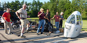 | Real streamlining can double the distance a unit of energy can take you at 70mph. How do we know this? What is real streamlining? What is it like to ride a streamliner? Why are our motorcycles and cars not streamlined today? Gathered around the big tent will be the finest examples of road-going streamlined motorcycles in America. Alan Smith, Kraig Schultz, Vic Valdes and Fred Hayes will be on hand with their machines to answer your questions. Last year some of these Challengers got 180mpg in real Ohio driving. That translates to around 2 cents per mile Compare that to 8-9 cents per mile for most bikes | ||||||||||||||||||||||||||||||||||||||