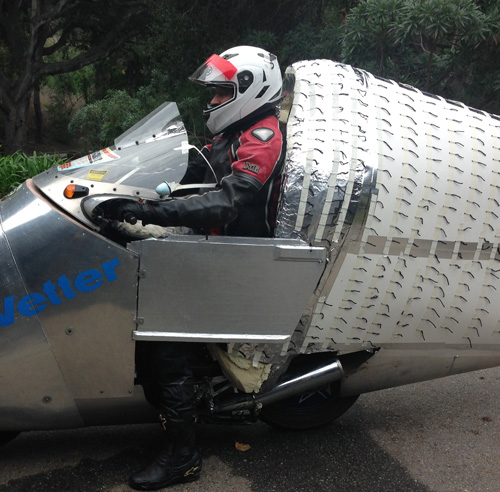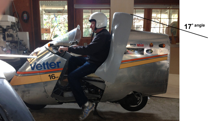 | Alan Smith really wants to win. By January, 2015, we had developed a seatback that allowed the air to flow smoothly past Alan on his Ninja 250 Streamliner. It was strange looking even to our eyes. | |||||||||||||||||||||||||||||