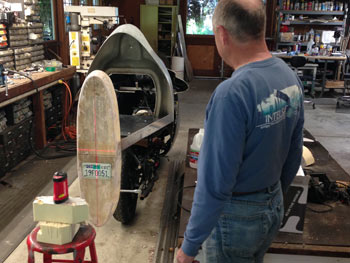 | But it looked promising. Was this worth making? It would take a lot of work. Alan was willing to finish it and then put fiberglass over it, skipping the mold process. That would work but it would end up being heavy and messy. | |||||||||||||||||||||||||||||