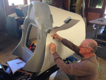 | It began to look pretty good. The finished shape is 2" wider on both sides and more rounded. More frontal area seems wrong. But the tufts are flowing straighter. Arnold Wagner said we needed to do this. | |||||||||||||||||||||||||||||