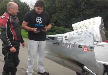| Meet Arnold Wagner Fortunately, we were visited by a man who should know, Arnold Wagner. For those of you who might not be aware of Mr. Wagner, let me tell you a bit: Arnold is a pilot... being a European aerobatic champoin pilot as well as a commercial 747 pilot. Among motorcyclists, he is most famous for his streamlined Eco cabin bikes. This man is smart: | ![]() | |||||||||||||||||||||||||||||||||