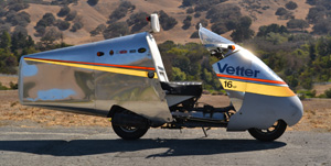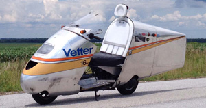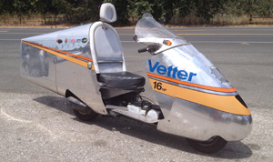 | 2008: I began with a stock, 17 hp Honda Helix. On a still day, a stock Helix might get to 72 mph. It generally got 62 mpg. But, not in "Vetter Conditions" because it is not streamlined. | |||||||||||||||||