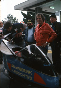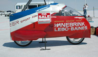 | How close can you get and still not be #1? Dan's 362 vs Charly's 372! Dan Hanebrink is an amazing competitor and still going strong. I came across him again at Bonneville in 2006. He was there still trying to set records. He says that bits and pieces of his 1983 Streamliner are still inside the machine to the left. | ||||||||||||||||||||||||||||||