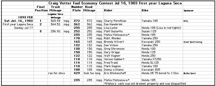 Third place in 1983, Matt Guzzetta 252 mpg!