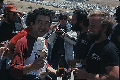 | Always playful, Honda's Matsu Matsuzawa cavorts with Rifle's Don Zacher | ||||||||||||||||||