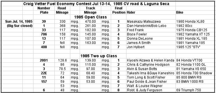 | Results of the 1985 Open Class | Results of the 1985 "2-Up" Class | ||||||||||||||||