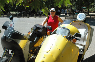 | The afternoon winds from the north, heading north in Salinas Valley are always the most powerful headwinds I have ever experienced. I am not kidding. After Paso Robles, they blow at least 40 mph. After King city, they get worse. Would the 18 hp of my Helix be enough to maintain posted speeds? How would Carol's 40* hp BMW fare? The 50 miles of freeway above Paso are posted at 70 mph. The Helix was able to go 70 about half way. In the last half, as the winds increased, it could only muster 65-7 mph, wide open. Carol had no problem running 70 and flaunted the fact, "dancing" around me on the freeway. My only consolation was that, inside my streamlining, I had absolutely no sensation of the winds. It was only when I stuck my hands out that I could feel it. | |||||||||||||||||||||||||||||||||