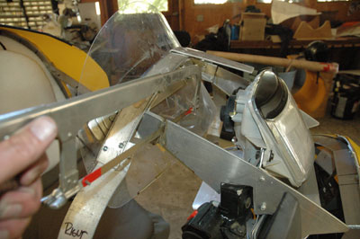 | Now it is time to saw off the old handlebar hardware that I so carefully designed and fabricated last July. Chapter 12. It served me well, lasting over 2,000 miles. | ||||||||||||||||||||||||||||||||||||||||||