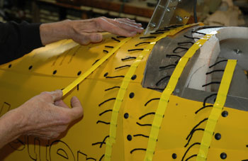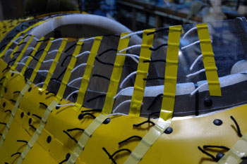| With a razor blade, I cut one side and then the other | Peel the completed strip up and stick it to the body | |||||||||||||||||||||||||||||||||||||||||||||||||||||||||||