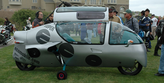 | Well, Ecomobiles are long to begin with. (and really streamlined, too.. round at the front... pointed at the rear) The length is necessary to bring the rear to a point to keep the air moving smoothly. Another factor is the effect of crosswinds while standing still. If you have a 90 degree crosswind, there can be a stressful moments as you have probably found when you are simply holding the machine up at a standstill. This is a good observation, Andy. I have felt this too. Also, I am very careful about parking it so there is no possibility of it blowing over, which it did in an Illinois storm last summer. | ||||||||||||||||||||||||||||||||||||||||||||||||||||||||||||
