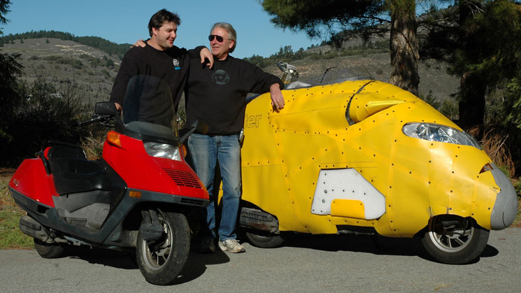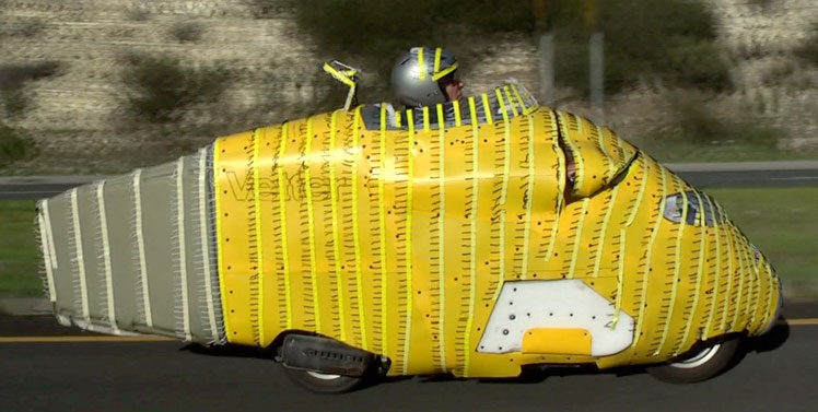 | From Andy: Hi Craig I am sorry that you have decided that this is the end of the line with the Helix, I have collected a small heap of Helixes (three) in the hope that at some point you would be making a body mould that I could fit onto mine. I really liked your other streamlined body shells (blowmoulded?) that you were offering for sale in two halves, left and right. Do not dispair, Andy. I need this streamlined body, too. I intend is to make the very parts you need, not blow molded but vacuum formed (above) At the time you said that this particular body would need a lot of extra plastic to stretch it to fit over a Helix, which would upset the wonderfully smooth skin of the original moulding. My hope was that as a result of the Helix project you might end up with a blowmould shell Mk II that would fit more or less straight onto a Helix. However I am only one customer and of course the economics of mould making are that you make one mould and then you need a bunch of customers to amortize the costs. I understand that. I also understand that with standard gearing the Helix does not like going much above 70mph even with the new body. Also that it is difficult to change the gearing and possibly even unhelpful, as you need the standard gearing to accelerate the machine away from standstill at a reasonable pace, and the bodywork may make it heavier. However here in the UK at least I can see a future in which the opportunities for exceeding 70-75 on the public road are very limited. Our motorways (freeways) are covered with thousands of speed cameras and the number is increasing all the time. The monitoring techniques are becoming more sophisticated with more 'average speed' devices, which read your plate at one point and then again later on, and check your speed between points. So I believe we are much converging on the policeman's dream future where almost everyone drives inside the national speed limit (70mph) with gaps between vehicles set by forward-looking sensors. (This development in the real world is not reflected in motorcycle sales in which every second bike sold here is a high-powered fantasy racer). Therefore the target we should be looking for is to go up to 70 and then cruise at that speed with the greatest comfort, minimum fuel use and minimum wind noise. I find the Helix really comfortable once it has a backrest. (You have not mentioned wind noise in your reports so I don't know how well the new body achieves that.) There is no wind noise. The only noise comes from the engine and CVT. There is no wind inside this thing. I hardly need a jacket or gloves. With my foam lumbar support, this thing is as comfortable as my Lexus car. And more fun. I do hope you get a lot of messages from other potential customers asking for that Helix sized blow mould! Finally, if I buy that mould from you I will not be taking the rubber tail, so don't mass produce that as well. I would just stop the body where it is and rely on the Kamm effect. I would exchange slightly less good aerodynamics for the ability to fit into a bike parking space (I know it inflates/deflates but that is another task). Personally for some limited experience I do not like tails that extend beyond the rear wheel because I suspect that, far from steering the vehicle into a crosswind, they have the opposite effect. The truth is, it does not have the opposite effect. The tail makes the Helix more stable at speed. Did you read my story about Joe Petrali? There are a lot of myths out there. The tail makes it more stable at speed. Even though I don't need the tail in town where I hardly ever get up to speed, I leave it on because 1) I live in a small town and parking is not a problem and 2) I think it is cool. You are right about parking... I have to be careful so it isn't hanging onto the sidewalk. Arnold Wagner's ecomobile runs without a tail for that reason (though this is my private opinion) | ||||||||||||||||||||||||||||||||||||||||||||||||||||||||||||