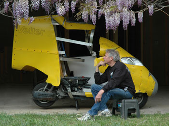 | April 9, 09, William says: "I can't think of a specific machine to use, but I have a suggestion: Design the kit to fit the most popular models sold. Or a Honda Silverwing. I'm definitely of the larger displacement school of thought. A bigger motor turning over at a slower speed won't generate the internal heat or friction of a small engine turning fast. I've noticed the best economy usually comes from an engine turning between 2000 and 3000 rpm at 60 mph. The most important (IMHO) metric is torque, not horsepower; bigger engines have torque in abundance, small ones don't, all else being equal. I'm thinking 450+ cc as a minimum, maybe even up to 1200cc. With the flap doors for the feet, (inspired by the NSU/Baumm?) you might want to consider installing a minivan-style sliding door to help streamlining. You could also think about installing a real roof for a completely dry riding experience. What would be really fascinating would be a treatment of the Vectrix electric maxiscooter, or its closest competitor, sold as the Xtreme XM 3500. With the Vectrix costing around $12,000 and the XM 3500 around $4,500 you might want to ask the manufacturers for a little assist, like donating the test mule? I'm suspecting the XM 3500 distributor might be a bit more receptive; if streamlining can get another 10 mph from their machine they'd compete nose-to-nose with the far more expensive Vectrix- until the Vectrix adopts streamlining..." | |||||||||||||||||||||||||||||||||||||||||||||||||||||||||||||||||||||||||||||||||||