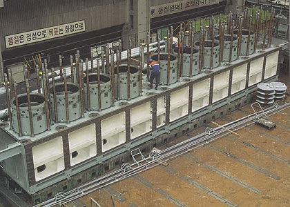 | But look at this: The Giant Wartsila-Sulzer RTA96-C from Aioi Works of Japan's Diesel United, Ltd. (that is a man in there between the cylinders) Fuel consumption at maximum power is .278 lbs per hp per hour (Brake Specific Fuel Consumption). Fuel consumption at maximum economy is 0.260 lbs/hp/hour. | ||||||||||||||||||||||||||||||||||||||||||||||||||||||||||||||||||||||||||||||
