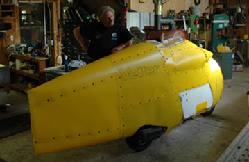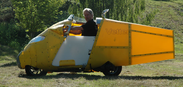 | May 7, 2009, David wrote: I was thinking that the very short travelling range that people get out of electric motorcycles could be greatly extended if they had the same streamlining that allowed the gasoline bikes to be pushed along with just a few horsepower. If a bike only needed 3-5 HP instead of 15-25 horsepower to keep it going at highway speeds, Vetter clarifies: Well, that was when speed limits were 55 and the rider was all squished into a tiny shell. Sitting up and comfortable at 70 mph means more like 15 hp. the range of an electric motorcycle could be tripled, quadrupled, or even better. just like the gas mileage improvements. Vetter comments: You are right. Electric vehicles need to begin with streamlining! If an extra power pack could be added for longer trips to extend the range even further, the electric motorcycle could become an attractive method of transport. At least for me anyway. I was thinking of the possibility of pulling an easy-towing add-on battery pack for longer trips either in the form of a narrow fin-shaped one-wheel backpack style trailer, or in the form of a "pusher-trailer" that also added it's own electric motor to help push the bike along in addition to the extra battery power. | ||||||||||||||||||||||||||||||||||||||||||||||||||||||||||||||||||||||||||||||