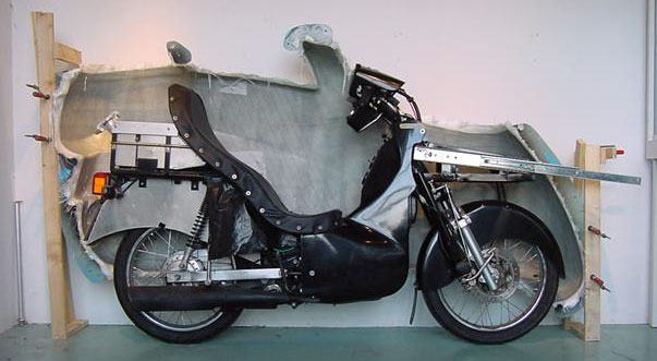 | Very revealing picture of Allert's 9 hp Honda ANF 125i. Note the sliders to move the fairing forward, out of the way. | ||||||||||||||||||||||||||||||||||||