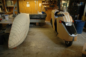 | May 7, 2008: Riding I ride this all the time. (Except in heavy fog and drizzle.) Before I commit to the final design, I want to be sure this machine will be something I will really want to ride. Think of it like this: "Of all my choices, will this be my first choice to ride today?" If the answer is: "Yes" I figure I am on the right track. (The turtledeck stops all wind.) | |||||||||||||||||||||||||