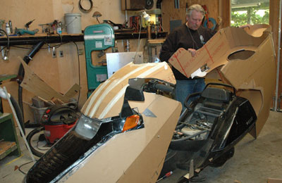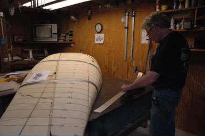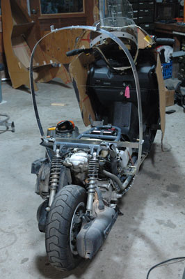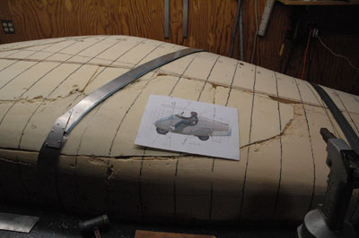 | You can see how the structure is evolving. Unfortunately, most of what I do, I do two or 3 times before I get it right. My garbage can is full of mis-shapen streamliner parts. It is just part of the design process Looks simple, doesn't it? Simple and strong are what I think of as "Classic American Design" | ||||||||||||||||||||