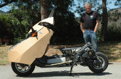 | Conceptually, these are very different vehicles. The original Helix is designed to carry two people with a trunk for storage. It is a great machine. Its fairing does a pretty good job of protecting the occupants and it gets 64 mpg, riding it hard. I want to move one person cross-country at real posted speeds, into headwinds, over mountains, with the best wind penetration possible. I doubt that Honda had this in mind for their Helix. I am hoping that real streamlining will lead to dramatic reduction in fuel consumption. | ||||||||||||||||||||