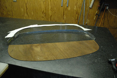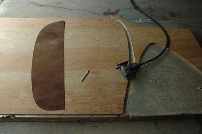 | It is simple to draw a line on 5/8" plywood, flip it over on the centerline and draw the other side. With a saber saw, I cut out the full section in the 5/8" plywood. Now I have a strong shape on which to make the other side. | ||||||||||||||||||||