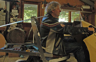 | With the bed and bulkhead finally in place, a serious problem shows up. I made the streamlined body to fit me. (Top, left) My son, Zak, sits 4" higher, from his seat to his shoulders. Top right. Zak won't be able to ride this thing because he won't fit into it. Many of my friends won't either. If I raise the top line 4", frontal area goes up too and I won't be as streamlined as I want. The solution? Reluctantly, I raise up the rear line 4" by adding an extension to the loop. I will make the seat with a 4" removable cushion for the big guys. This is better for me because a higher seat is more comfortable. Compromises, compromises. This is what design is all about. "You want this? You gotta give up that" Vetter Design Truth | |||||||||||||||||||||||||||||||