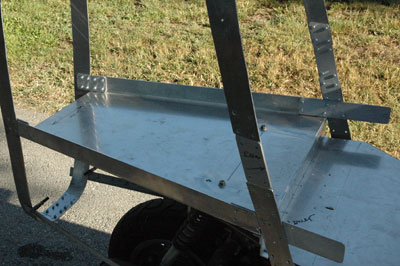 | The 4" extensions are clearly visible in this shot. Also, you can see all the extra holes I have drilled and not used. When we make a prototype, we have no printed plans to work from. Everything is made by trial and error. I make a lot of errors. If this ever turns into a kit, you will know exactly where the holes go before you drill them. | |||||||||||||||||||||||||||||||